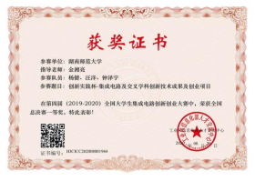 2020年,在第四届全国大学生集成电路创新创业大赛中由金湘亮教授指导的研究生杨健、汪洋和本科生钟泽宇获得全国总决赛一等奖。