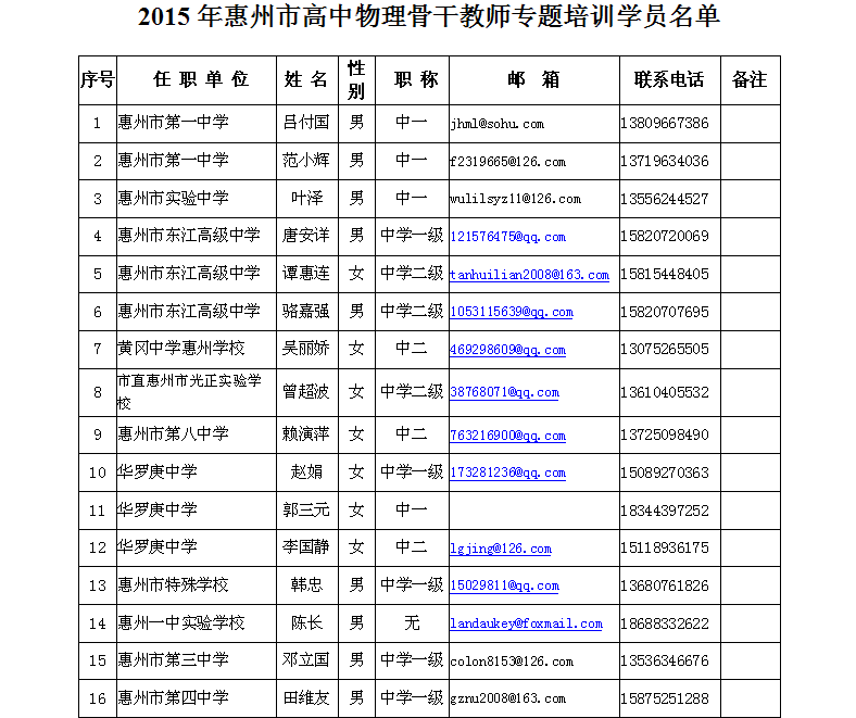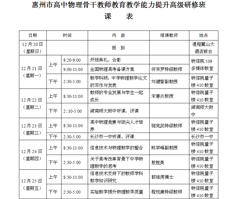 惠州市高中物理骨干教师教育教学能力提升高级研修班