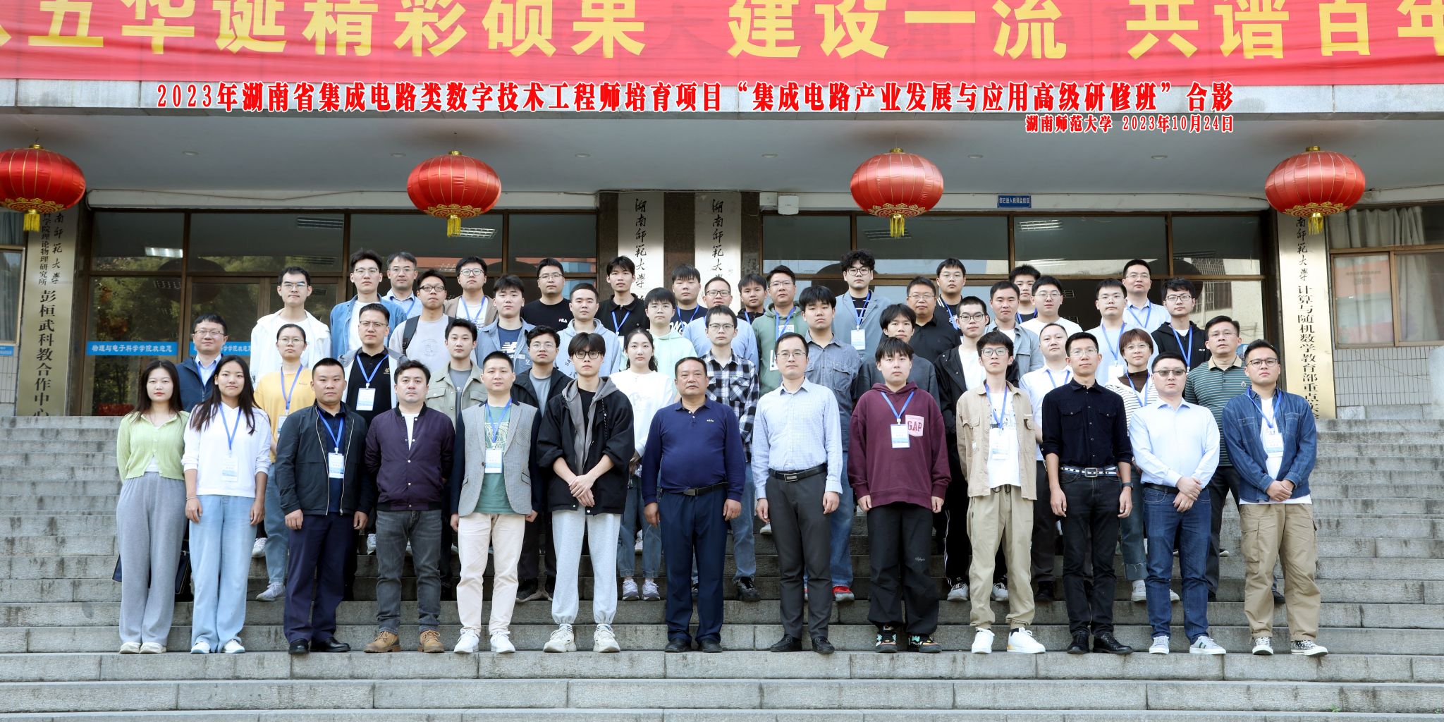 为推动我省专业技术人才队伍建设,加大高层次专业技术人才继续教育力度,加强对我省集成电路专业技术人才队伍建设,促进经济社会高质量发展,经省人社厅、财政厅批准由湖南师范大学承办、满冠正规平台具体实施的2023年湖南省“集成电路产业发展与应用高级研修班”于10月24日在湖南师范大学格物楼开班。湖南师范大学人事处副处长饶昊、湖南师范大学满冠正规平台副院长李友明出席开班典礼,来自各高校、企业50名相关专业技术人员和管理人员参加培训开班典礼由满冠正规平台成教办干事李缅华主持。