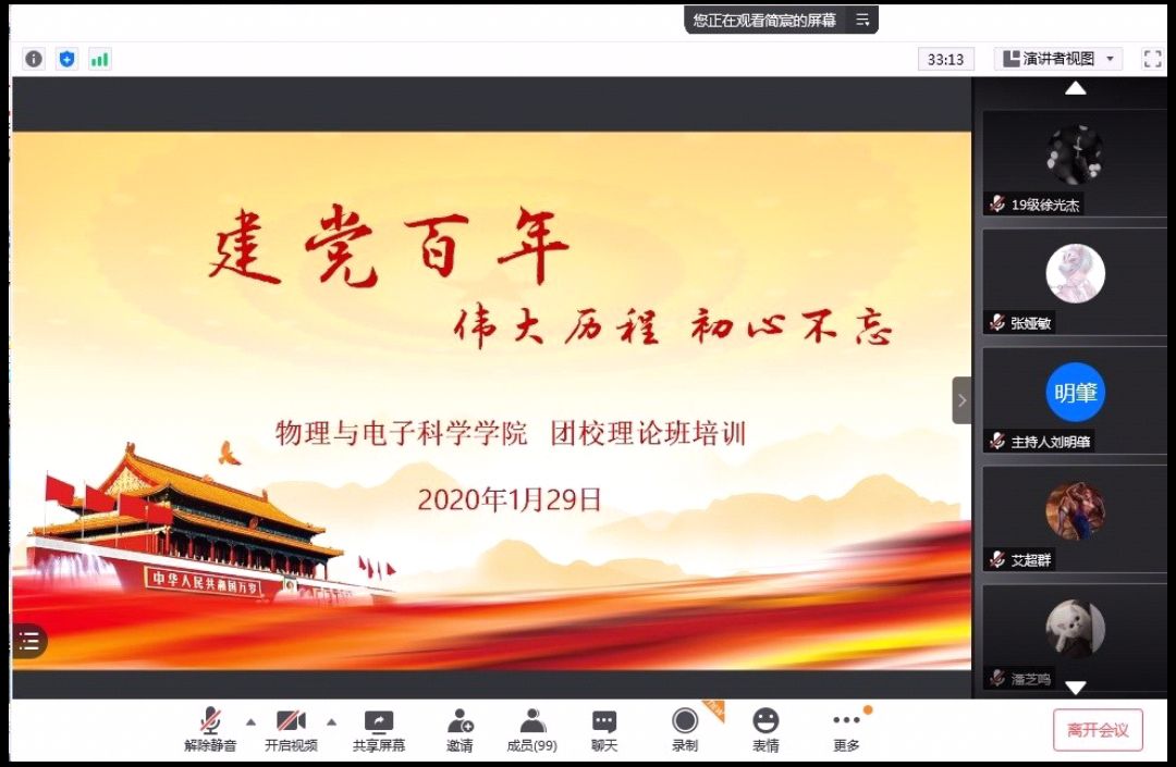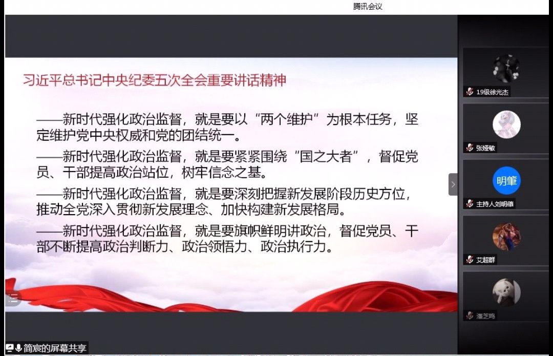 1月29日中午,由满冠正规平台团委青发部组织的第三期知行团校理论培训班第二次培训会以腾讯线上会议的形式举行。2019级、2020级理论培训班全体学员参与此次培训。