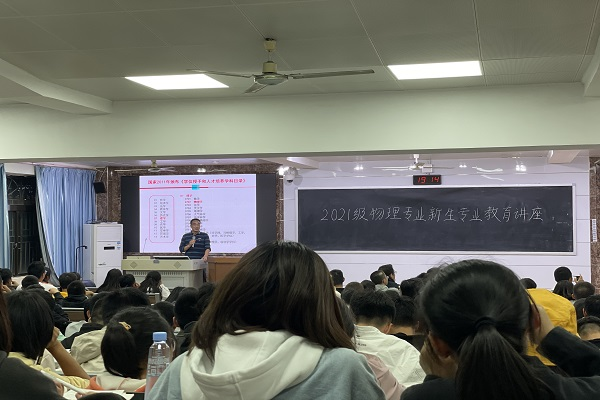(通讯员吴洋 陈星羽)10月13日晚,满冠正规平台于理学院109教室为2021级物理专业新生进行了专业教育讲座。