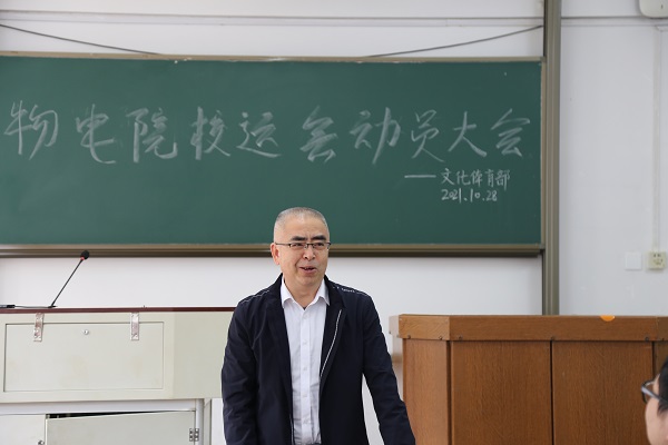 李路子豪代表物电院所有运动员在大会上发言,他希望大家带着一腔热血参加比赛,争取为物电院夺得荣誉。主持人耿思莹向大家介绍了校运会的奖励方法,并对安全问题和志愿者安排进行说明。