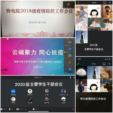 健全组织架构,制定可行方案。迅速建立起学院——班级——寝室三级联动疫情防控工作组织,制定了符合学院实际的工作方案,严格高效落实各项防控举措,及时发布相关工作指示,通过辅导员及团学干部队伍,采用视频会议、工作群等形式,全面掌握各班级学生详细情况。