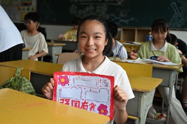课堂上,涂月华通过回顾中国从过往至今的变化来引入主题,重点介绍了中国共产党对中国发展起到的重要作用及所做伟大贡献,并播放中共一大相关视频,结合红船精神,为同学们讲述了党的奋斗史,进一步诠释了伟大建党精神的内涵。她认为,不忘历史才能开辟未来,增强历史自觉性才可更好发展。她组织同学们绘制“请党放心,强国有我”主题手抄报,同学们运用收集到的资料,精心设计手抄报版面,发挥丰富想象力,紧绕主题进行创作,追述了党的光辉历史。