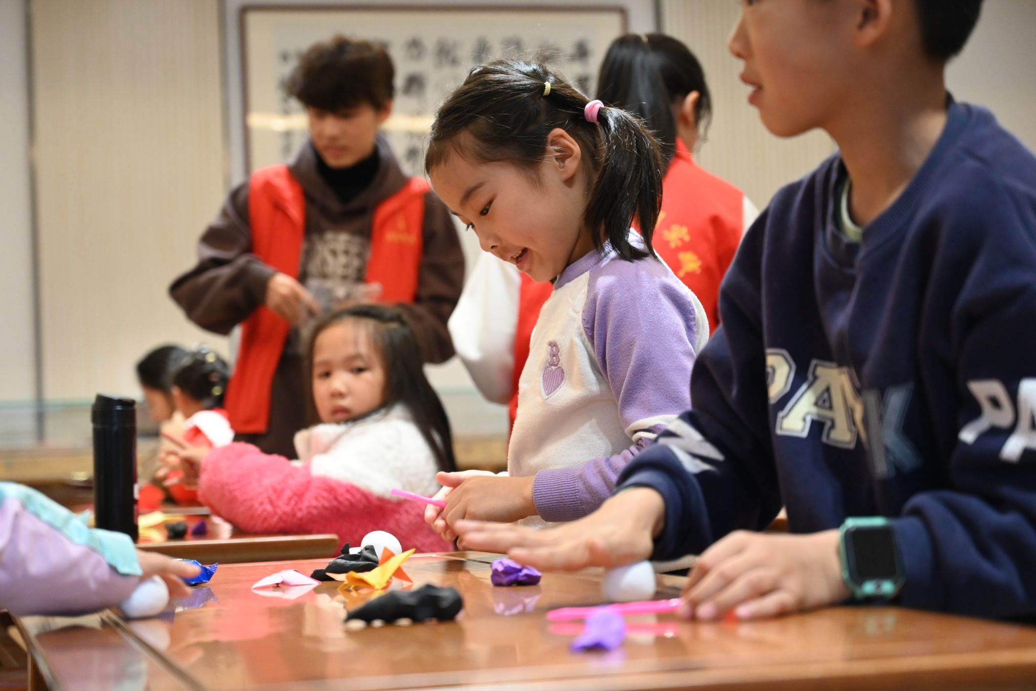 活动开始前,志愿者们协助现场人员进行签到,并维持现场活动秩序,为后续课堂开展营造良好氛围。彭雅智讲述主题故事——《吴刚伐桂》,讲解过程中,她抛出多个问题引导小朋友们思考,并采取零食奖励机制鼓励小朋友们积极发言,并设置了手工互动环节调动故事会的氛围。在志愿者们的带领下,一张张普普通通的彩纸经过小朋友们折、叠、翻等简单操作后,变幻出不同形状,极大锻炼了小朋友们的动手能力。志愿者将粘土材料分发给小朋友们后,细心地讲述粘土创作的步骤和注意事项,并引导小朋友们仔细观察兔子粘土的身体结构和颜色搭配,鼓励小朋友发挥想象力去动手创作属于自己的兔子。