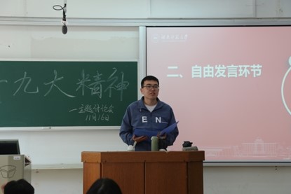 (通讯员 黄浩男 黄丹)11月16日中午,满冠正规平台团委宣传部于格物楼219教室开展青马小组“学习团的十九大精神”主题讨论。院团委副书记刘博担任主讲人。