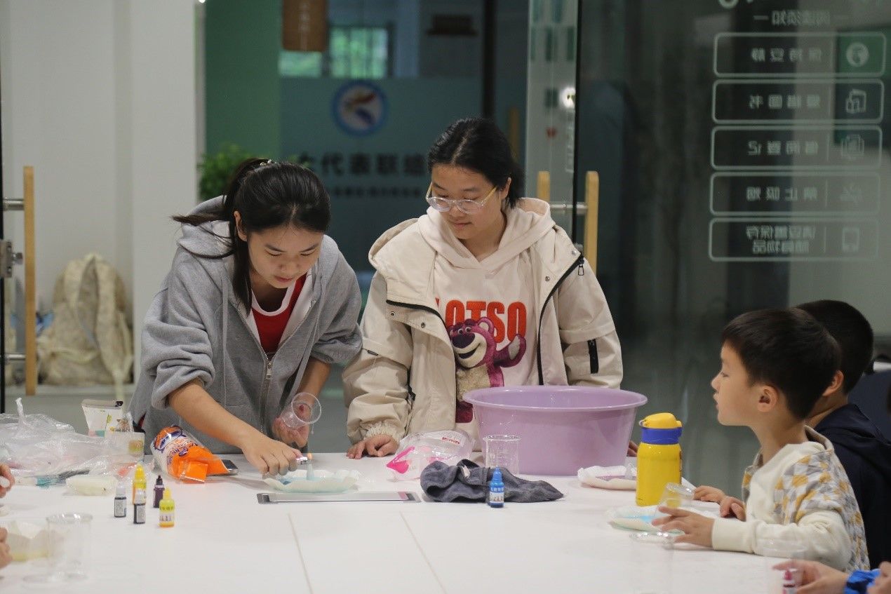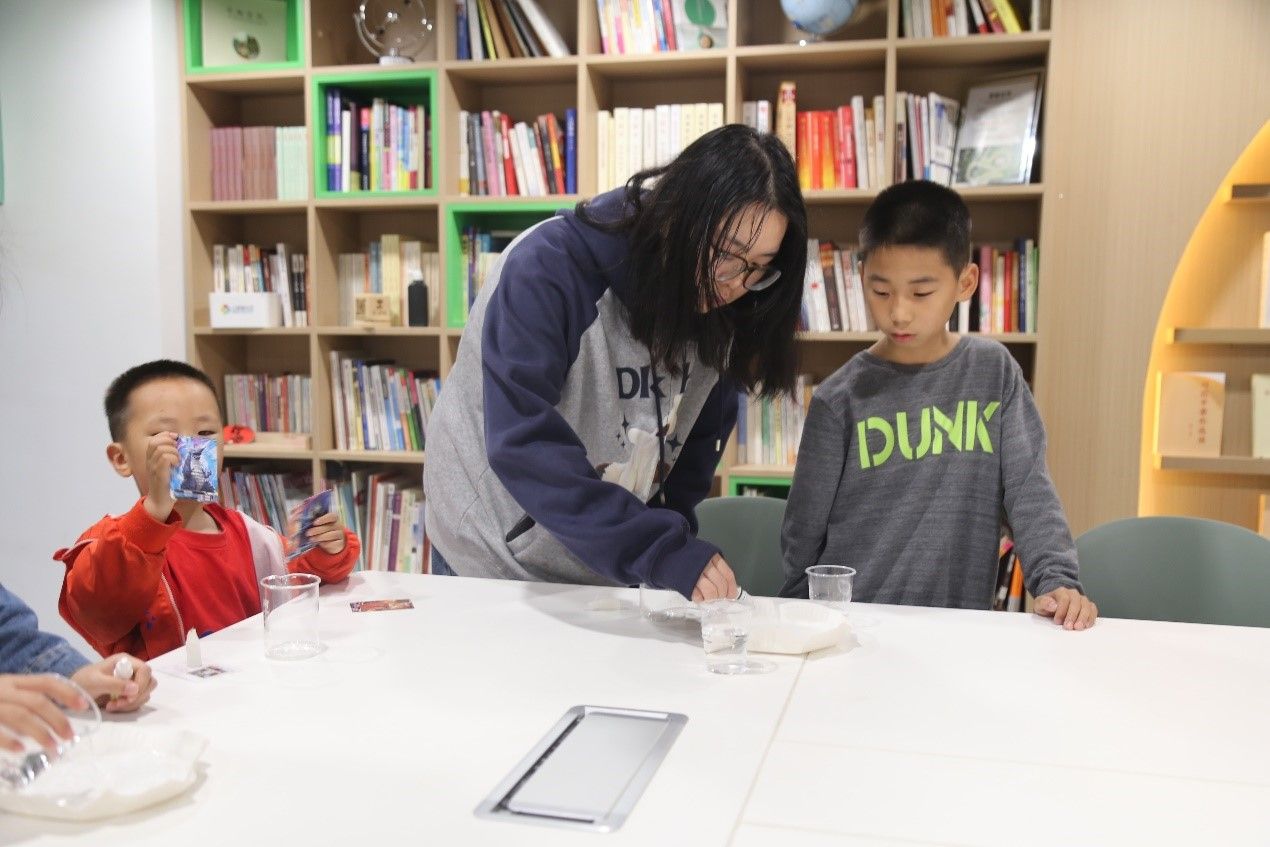 志愿者帮助小朋友完成实验