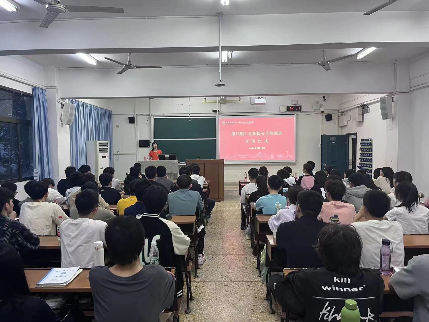 5月10日晚上7点,物电院第76期入党积极分子培训班开班仪式暨“开班第一课”于格物楼219教室举行。开班仪式由学生工作办公室主任黄维主持。学院专职组织员吴浪波出席开班仪式。