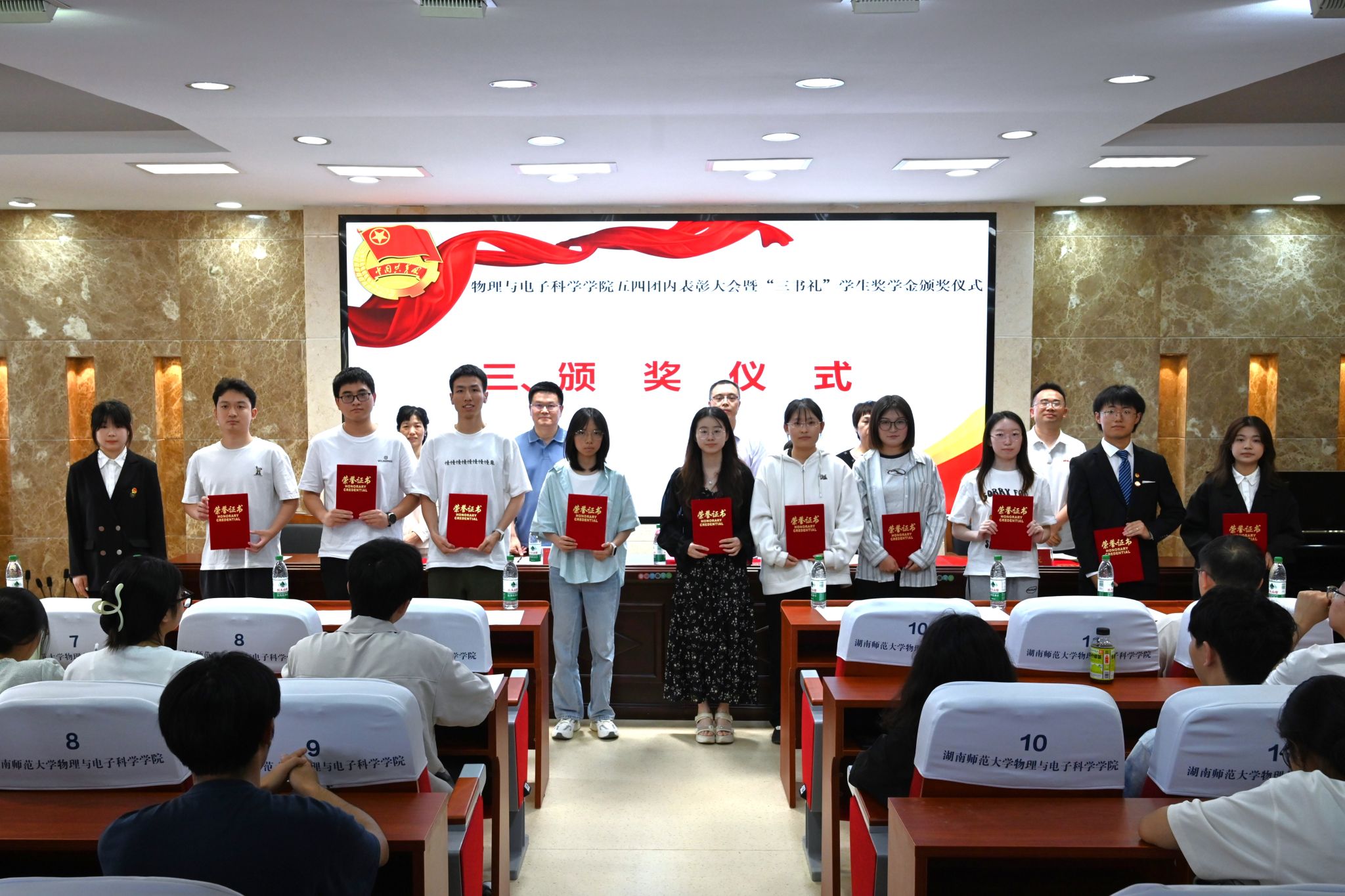 (通讯员 王贻菲 黄丹 段楚楚)6月6日下午,满冠正规平台(以下简称“物电院”)于格物楼509报告厅举办五四团内表彰大会暨"三书礼"学生奖学金颁奖仪式。"三书礼"董事长苏文华、物电院院长刘红荣、院党委书记罗嵘、院专职组织员吴浪波、副院长潘启沅莅临现场,院党委副书记郭铭伟担任主持人。