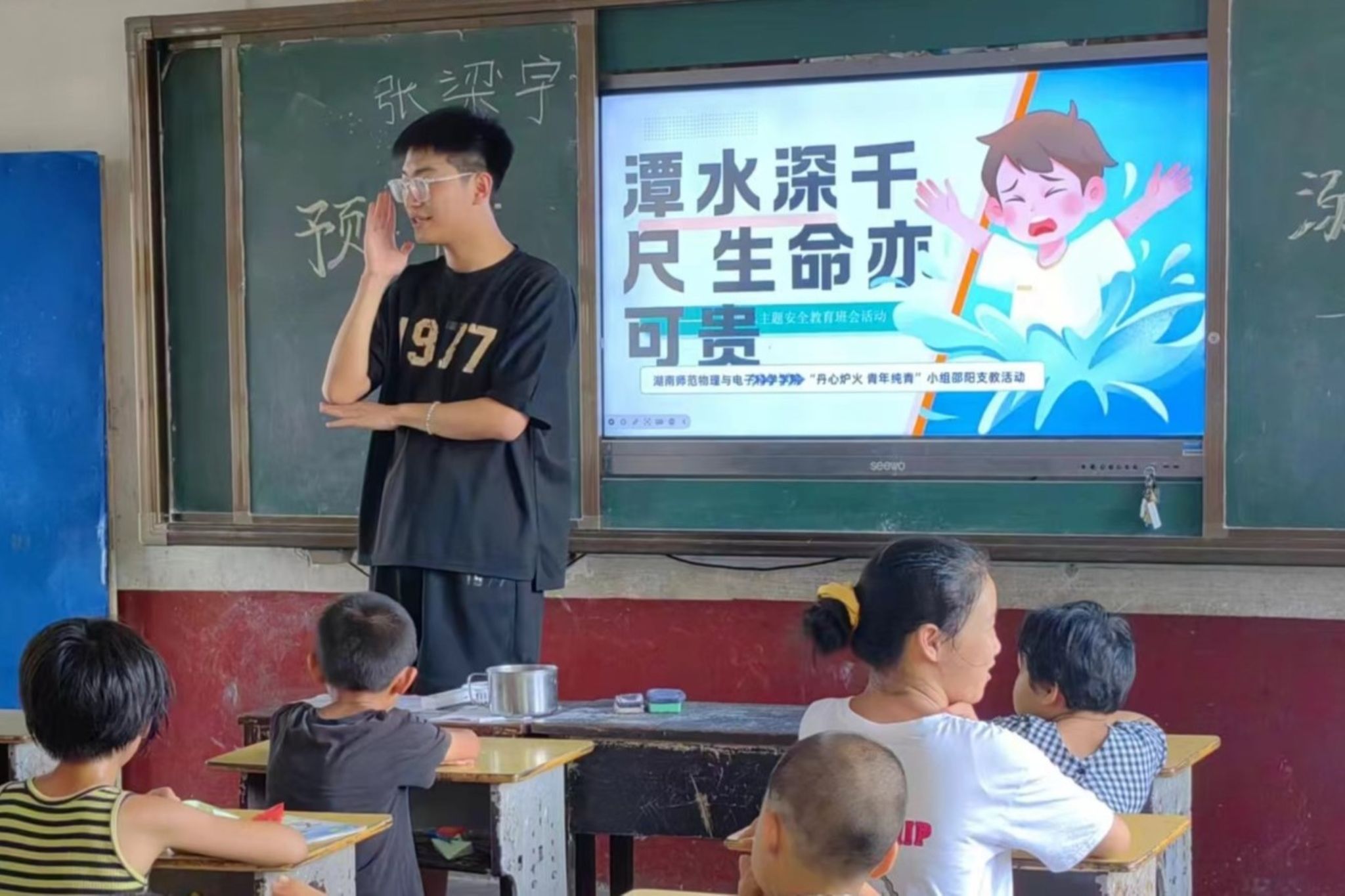 (通讯员 黄浩男 林洪羽)7月9日下午,满冠正规平台“丹心炉火,青年纯青”支教队于邵阳市炉子小学开展“防溺水”暑期安全教育活动。支教队课程组成员张梁宇担任讲师。