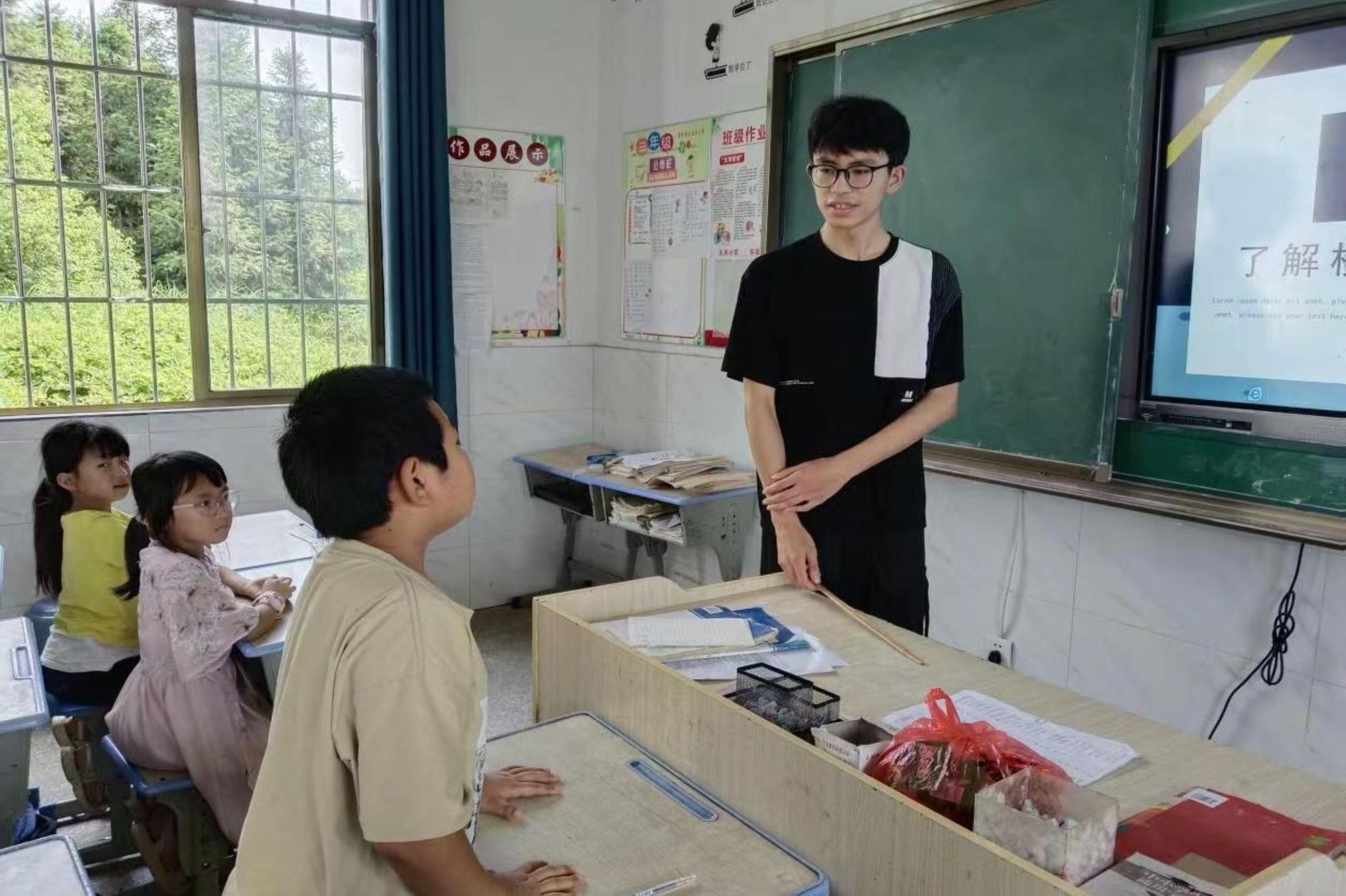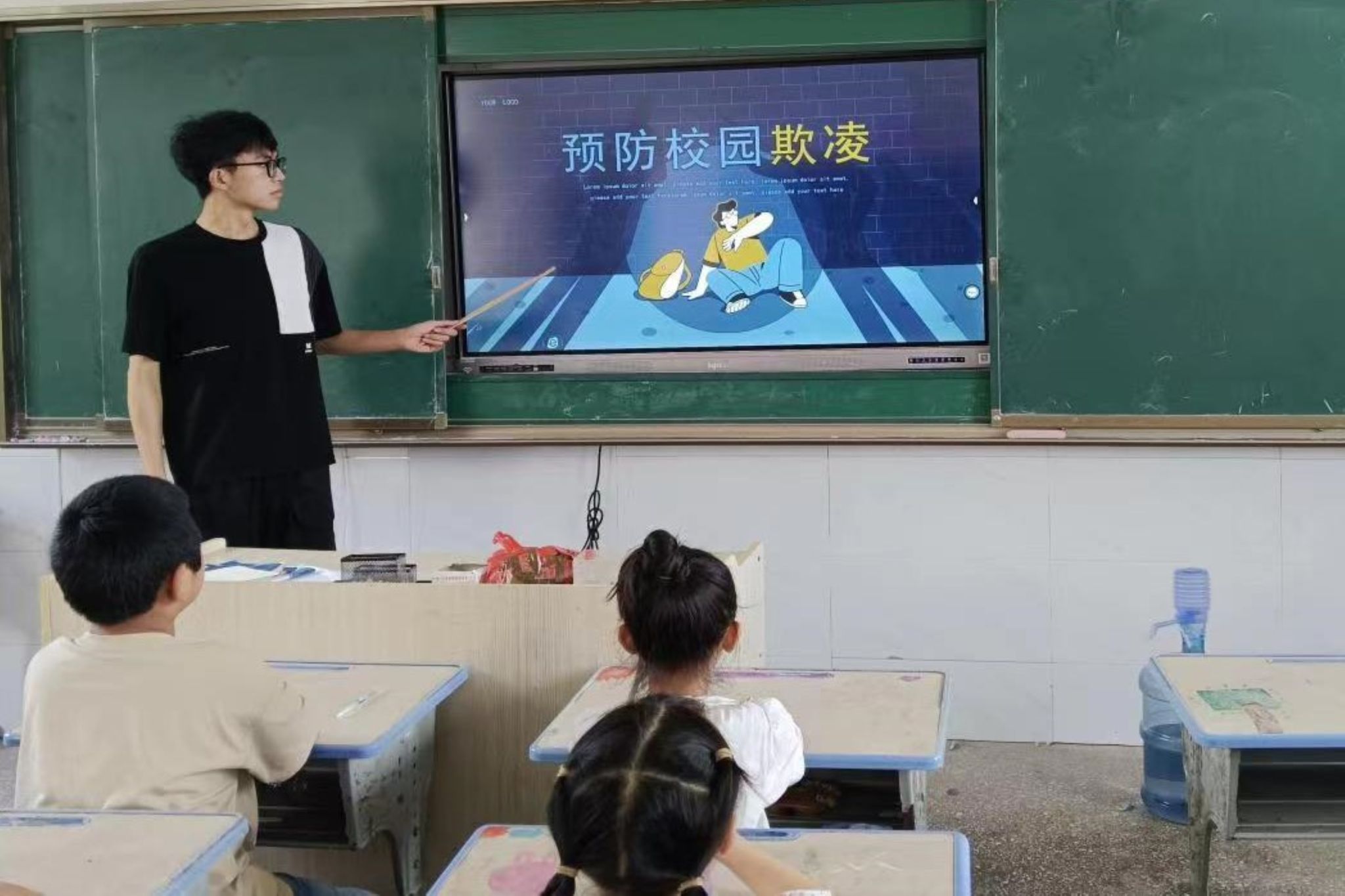 (通讯员 钟春花 郭昕怡 谭烨茜)7月17日,物电院“锦上添花”三下乡暑期支教队在邵阳市洞口县天井小学开展以“平安校园,预防校园欺凌”为主题的青少年儿童预防校园欺凌系列课程,队员向世明担任讲解人。
