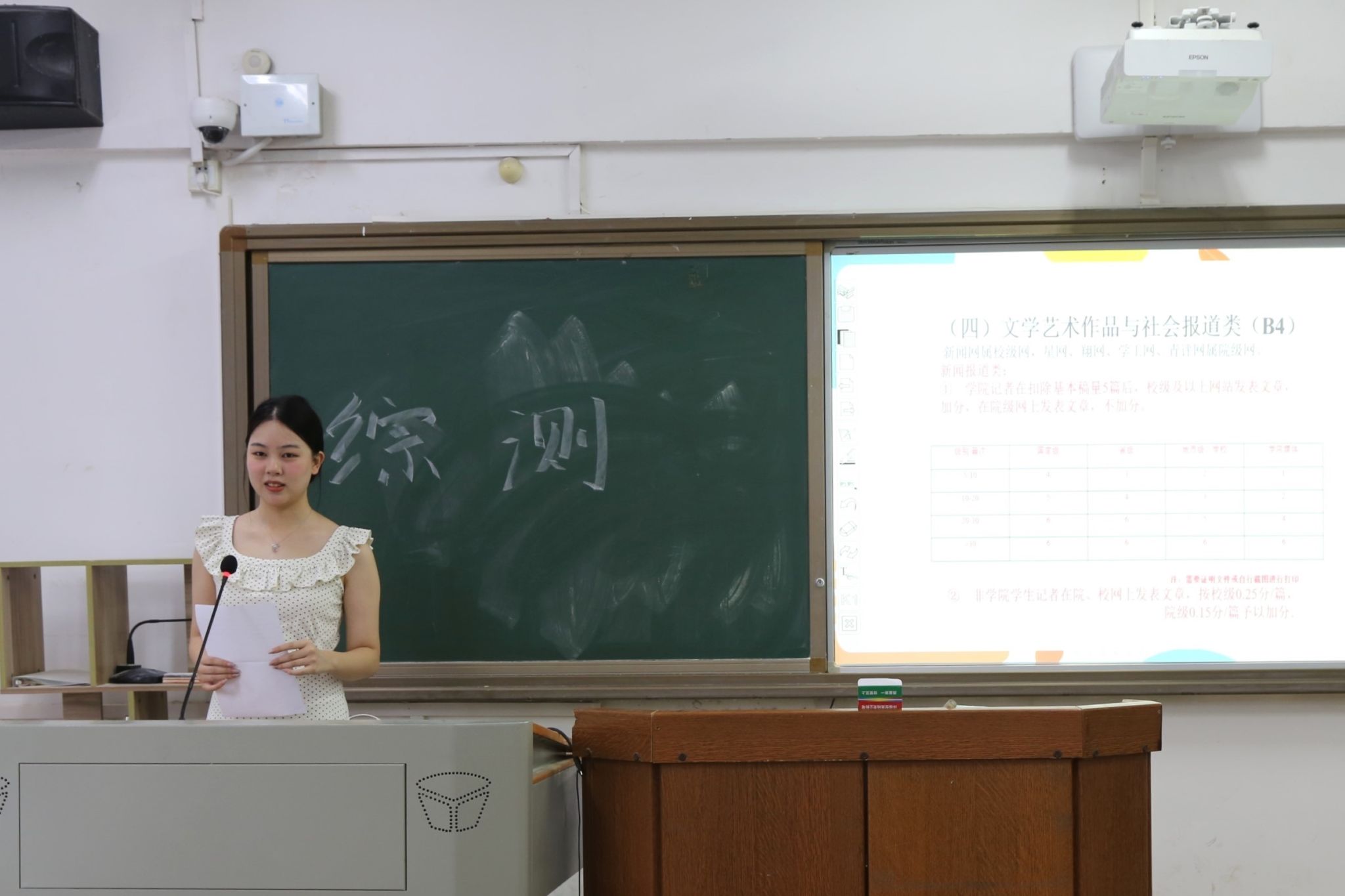 (通讯员 黄浩男)9月9日中午,满冠正规平台学生会学发部于格物楼217教室开展2023-2024年度综测动员会。学生会指导老师戴文纯出席会议,学生会学发部负责人刘璐杰、王孟旸主持动员会。2022、2023级各班综测评定小组成员参加会议。