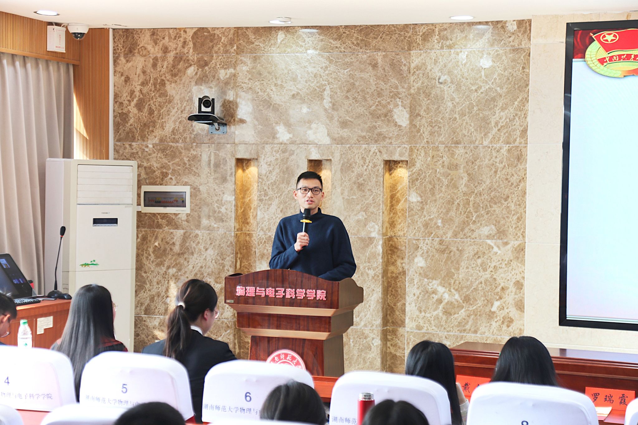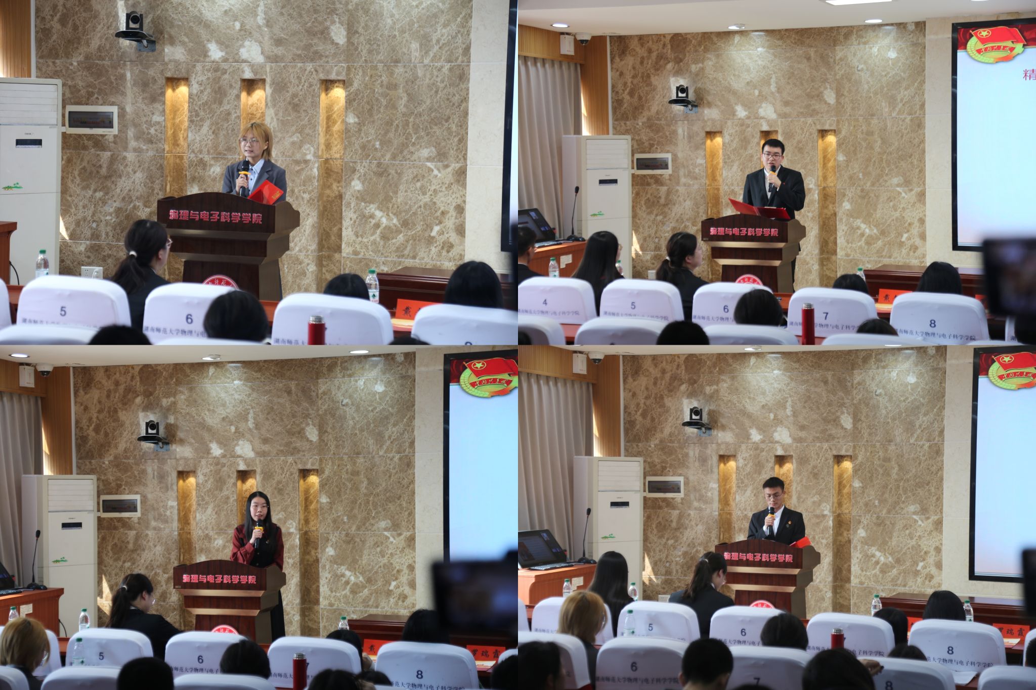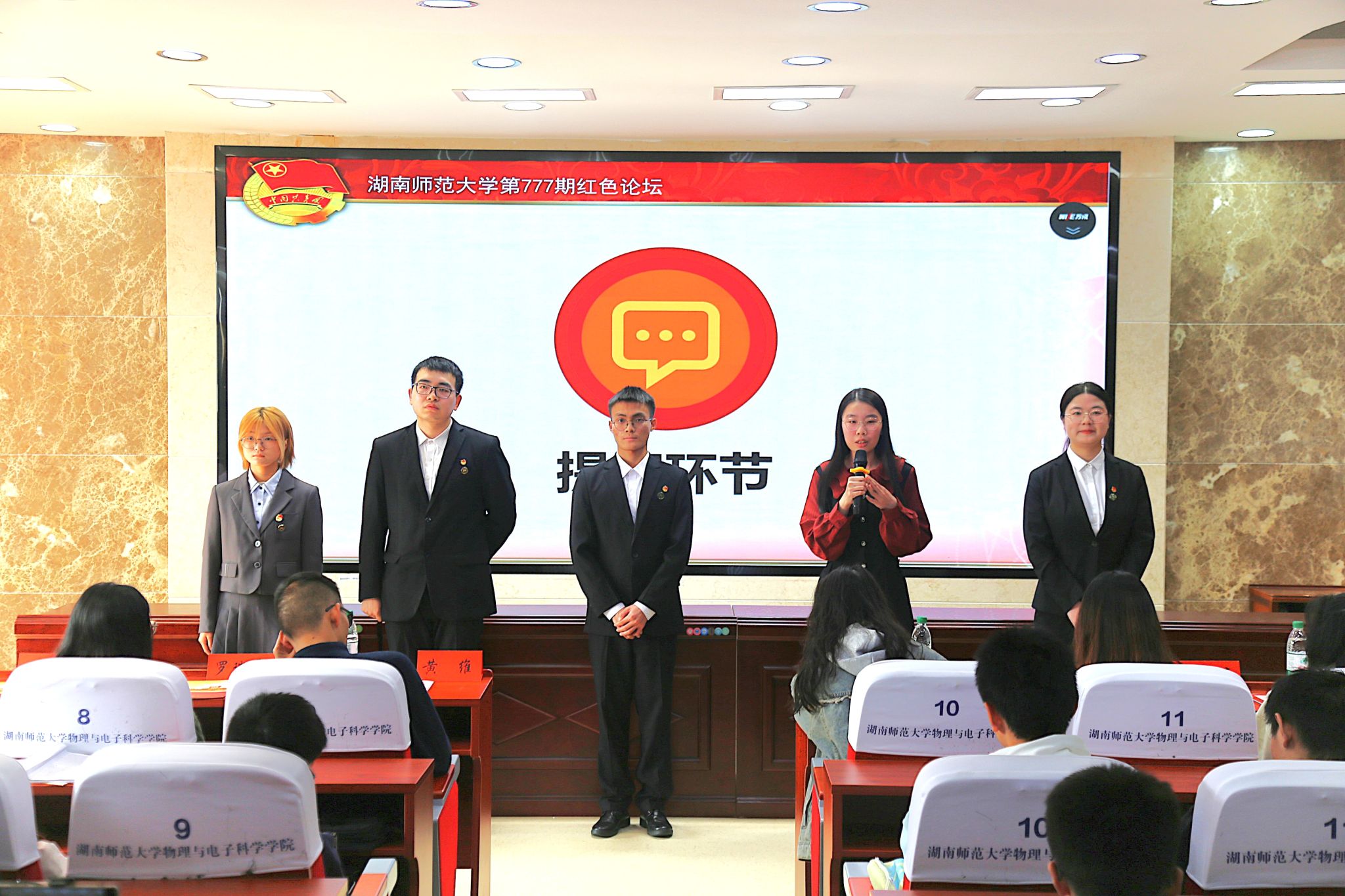 论坛在共青团团歌中拉开帷幕。五位主讲人依次登台,结合个人主题做出分享。谭烨茜重点阐述了革命文化与社会主义先进文化内涵,强调弘扬革命文化可构筑精神力量,并指出二者融合可推动文化创新性发展,为实现中国梦助力;周志豪聚焦科技创新,指出二十大精神为创新提供动力,呼吁青年传承红色基因,把握住数字化与人工智能的机遇,推动可持续发展;周柏成回望二十大后国家成就,强调青年应从历史取经,坚持党的领导,立足当下,加强本领,在科技、文化、国际交流各领域内勇于担当,为复兴伟业拼搏;马倩椿解读二十大对青年世界观和人生观的引领作用,她以湖南革命先辈为例,激励青年树立正确三观,摒弃不良心态,为祖国人民奋斗,于时代潮流展青春担当;何亚亚阐述青年在强国教育建设中的使命,指出青年应具强国信念、修品德素养、夯专业根基,从传承文化、科研创新、教育实践等方面着手,为教育强国的建设添砖加瓦。