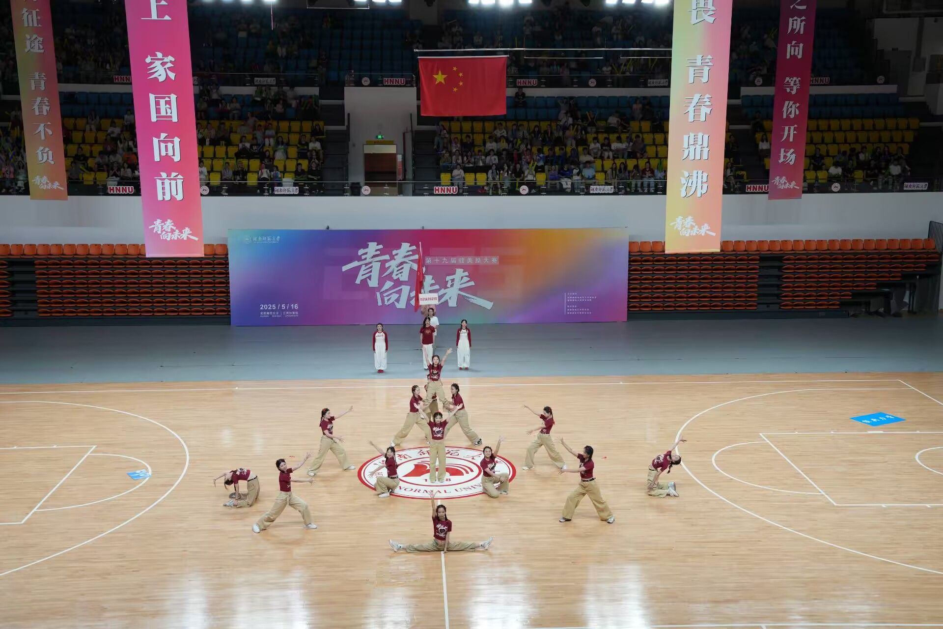 (通讯员 黄浩男 田恬)5月16日晚上,湖南师范大学第十九届“青春向未来”健美操大赛总决赛于江湾体育馆举行,来自多个学院的本科生与研究生代表队同台竞技。物电院本科生健美操代表队(以下简称“物电院代表队”)代表学院参与此次决赛。