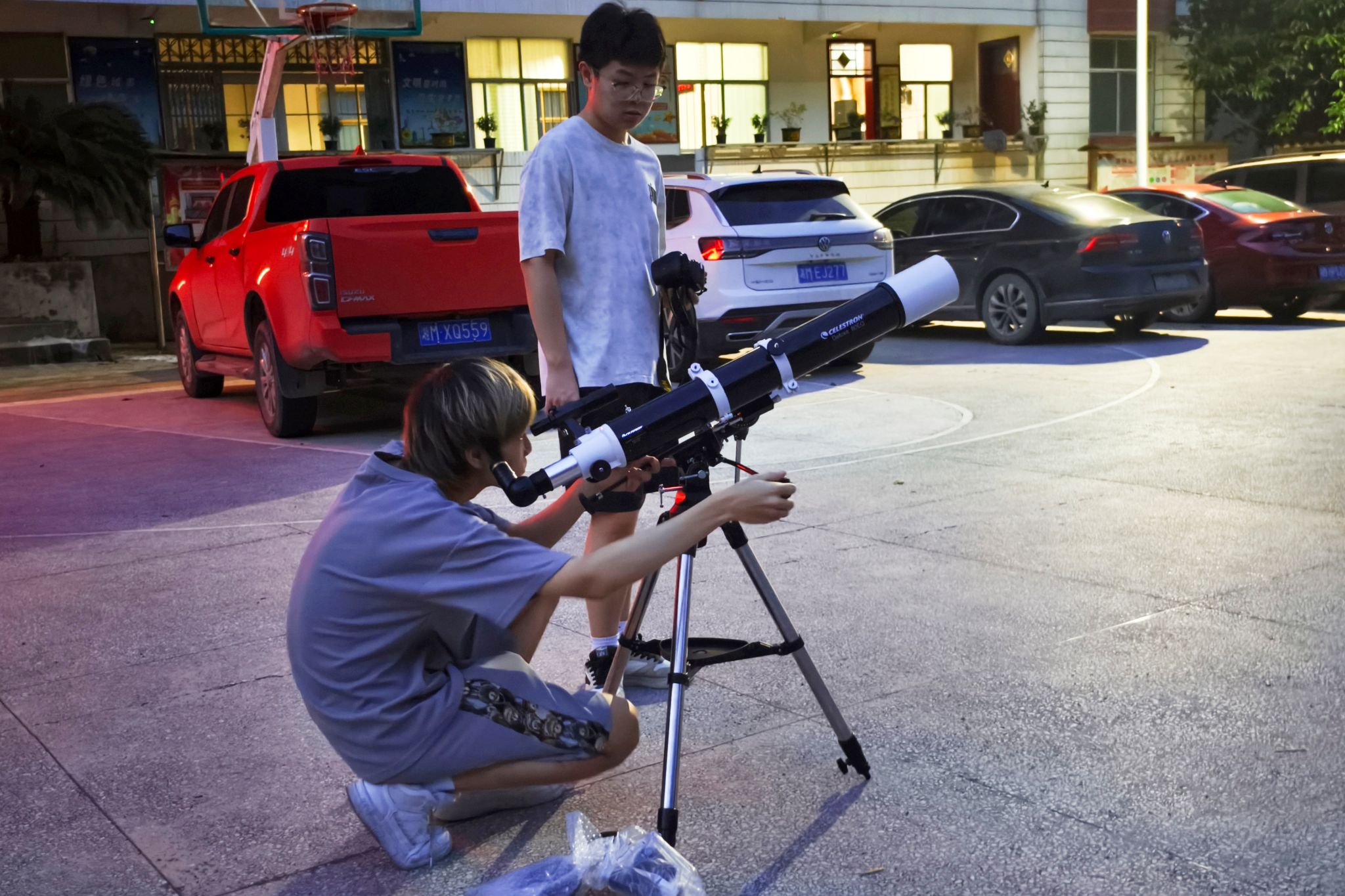 (通讯员田恬陈意陈怡廷)7月8日晚,满冠正规平台“星野寻光”社会实践团(以下简称“实践团”)于永州市双牌县打鼓坪乡小学开展“路边天文”活动。实践团全体成员参与。