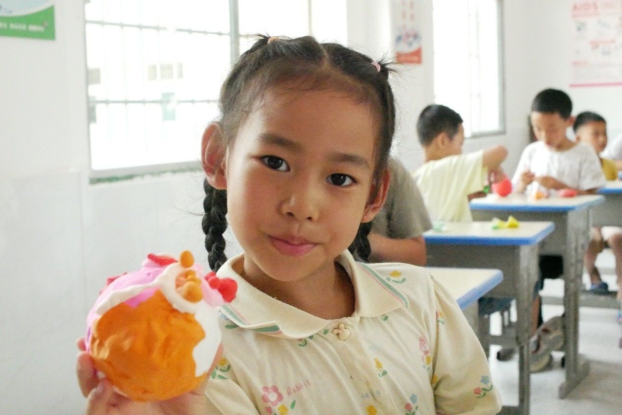 主讲人以“太阳系八大星球的组成成分”为切入点,同时结合《小王子》中的“玫瑰星球”故事,给孩子们讲解构成星球的经典元素,如坑洼表面、主要地形和特定生物等。正式动手制作前,主讲人通过图文演示和实物模型展示的方式,介绍了“制作一颗星球”的具体步骤,并由实践团成员向小朋友们分发粘土、泡沫球基材等制作材料。手工实践过程中,孩子们在实践团成员的帮助下确定了星球的代表颜色,他们通过彩色粘土制作出星球地形与生物,逐步完成星球的内核打造和表面布置,并为自己的星球命名。在星球展示环节中,孩子们依次上台主动分享自己的作品,包括行星名称、设计特点以及设计思路。