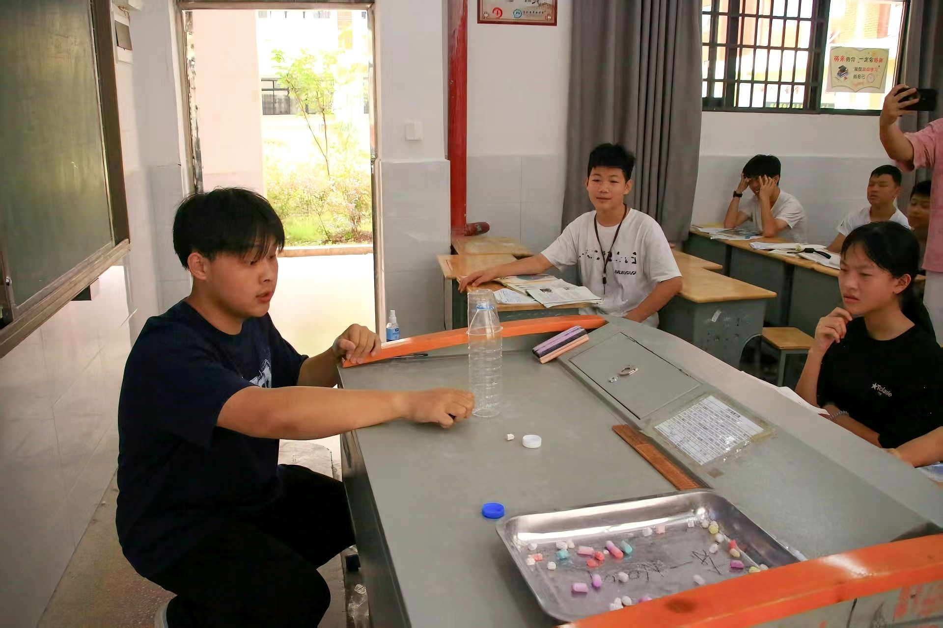 在保障安全的前提下,胡贤伟、伍坤结合自身专业背景,设计此次贴近学生认知水平的实验课程,有效提升了学生对物理学科的兴趣和课堂参与度,达到了预期的科普效果。