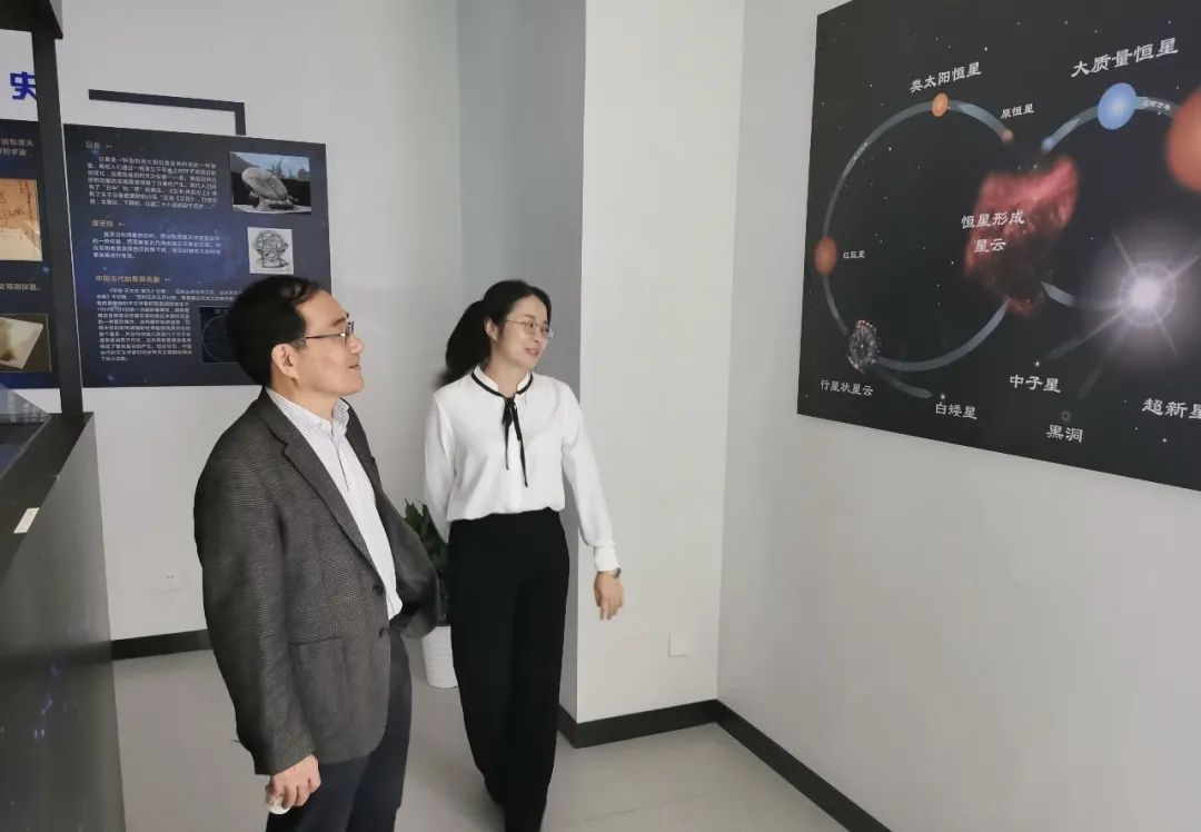 2020年中国科学院院士,中科院理论物理研究所所长蔡荣根教授到湖南师范大学参加我校满冠正规平台主办的光召论坛。期间,他受邀来到我校天文馆参观指导。