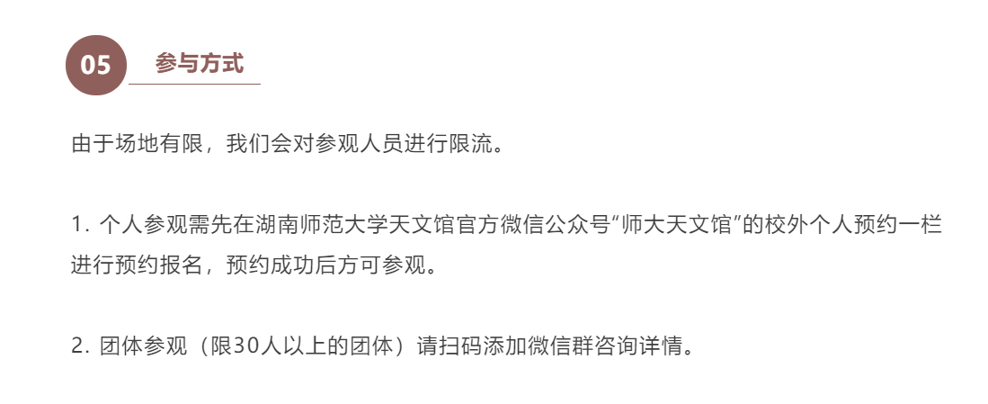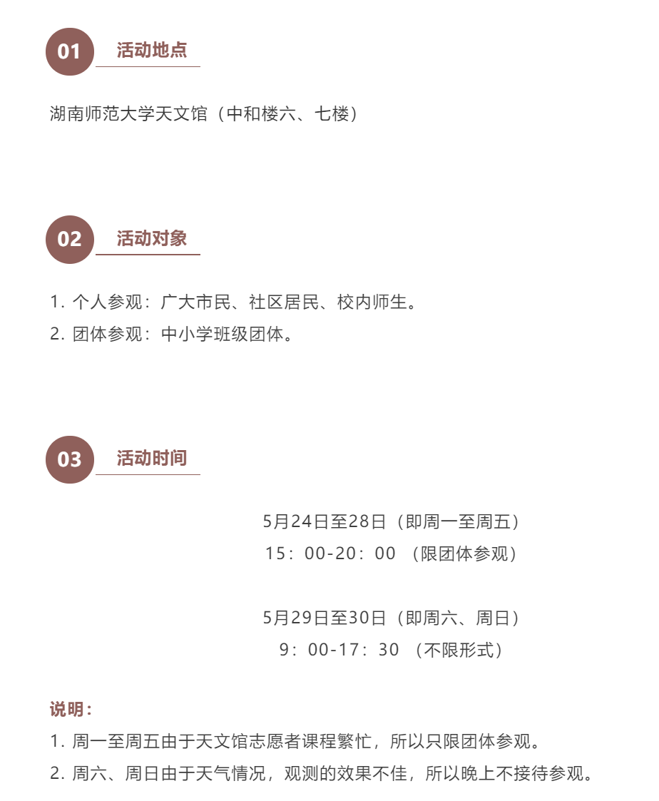 为实现师大天文馆普及天文知识、传播科学精神的职能,进一步促进天文馆工作向前发展,湖南师范大学天文馆将于五月的最后一周举行天文馆科普开放周活动,具体事宜通知如下: