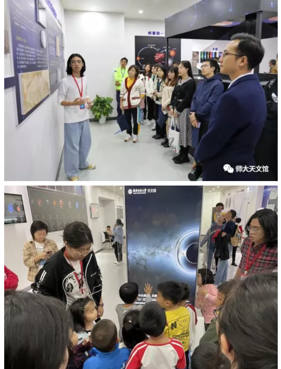 秋风徐徐,湖南师范大学天文馆给广大长沙市民和校内新生送来了一份迟来的秋日礼物—科普开放月活动。十一月,天文馆对外免费开放参观,并提供免费讲解导览服务 。馆内学生科普组织-天文协会的成员们可谓是忙得不亦乐乎,不但要为参观者们讲解天文知识,还要安排人手来维持好现场秩序,保证参观者的参观体验和活动的顺利进行。让我们一起来回顾一下十一月天文馆的开放月活动吧!