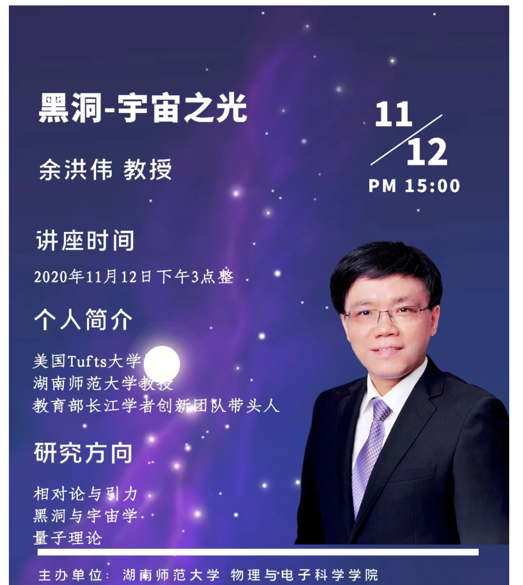 我们院天体物理的另一位大佬,余洪伟教授,将给大家做直播讲座啦~