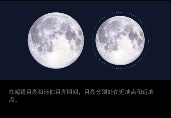 两次到达近地点之间的周期称为近点月,为27.55 天。两次满月之间的周期称为朔望月,为 29.53 天。周期的长短差异,导致每年只出现 3-4 次超级月亮。出现超级月亮时,月球的圆盘约比平时大14%。摄影师在此期间拍摄月亮升起,便可营造更加戏剧化的照片效果。因此,请在日落前备好相机!