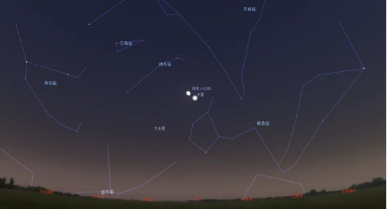 2023年11月14日1时21分天王星位于冲的位置,视直径3.8角秒,视星等+5.6等,是一年中观测远日行星天王星的好时机。幸运的是,天阴四(白羊座δ星,4.4等)也在附近,所以很容易找到。如果发现了那样的恒星,可以把它放在一起观测。用大口径高倍率天文望远镜观看,可隐约看见天王星呈青绿色的小盘面,还能看见五颗主要卫星——天卫一(Ariel)、天卫二(Umbriel)、天卫三(Tatania)、天卫四(Oberon)和天卫五(Miranda)。可以趁这个机会挑战一下天王星观测。