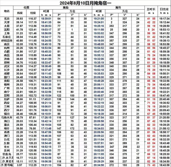 月掩角宿一发生于8月10日的日落后,当天正好是七夕,此時角宿一亮度1.0等,月相近上弦月。