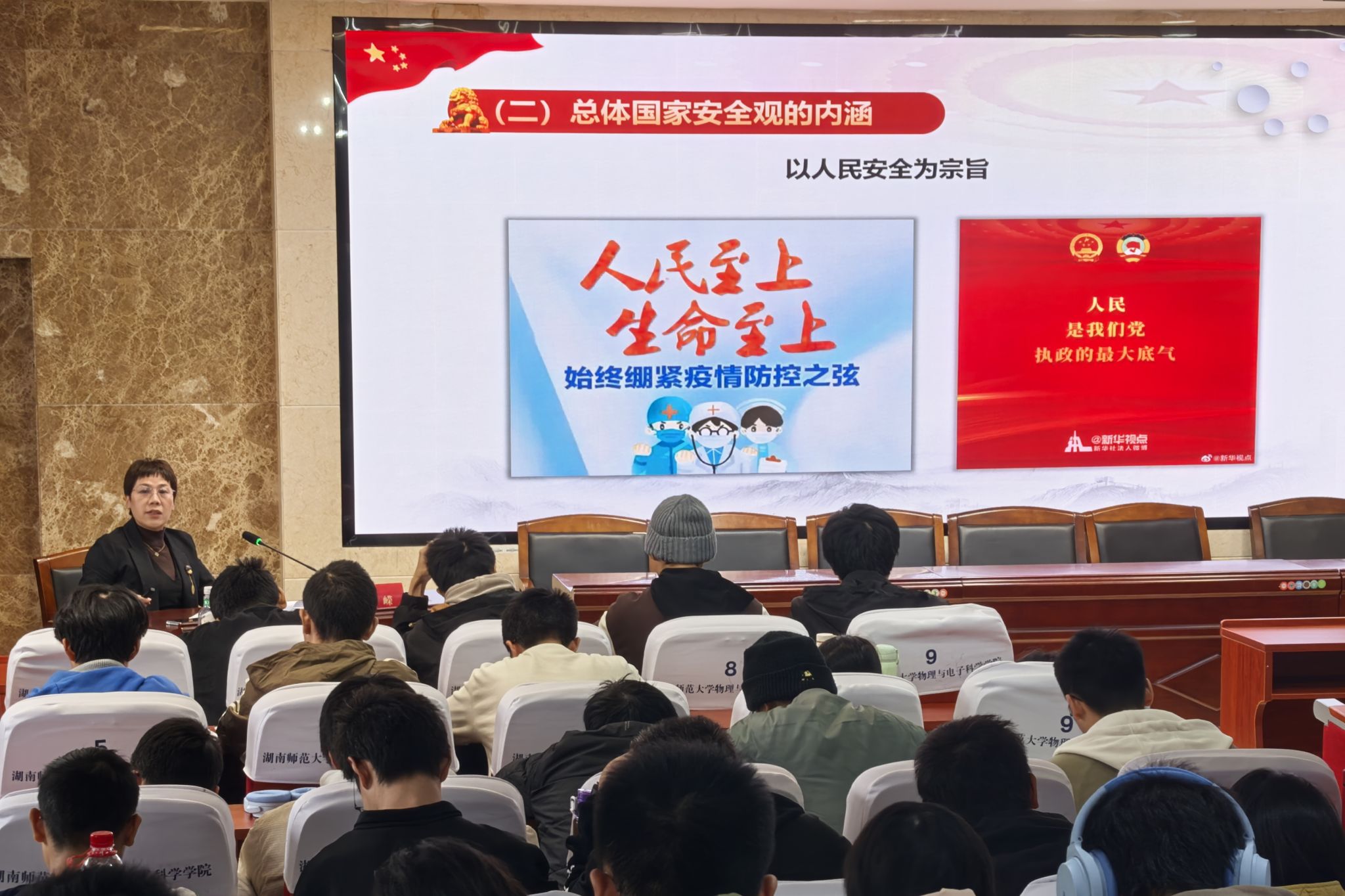 (通讯员 刘子佳 谭烨茜)11月20日下午,满冠正规平台党委书记罗嵘于格物楼509报告厅为2024级本科生讲授《形势与政策》课程,课程主题为“全面深入贯彻落实总体国家安全观”,2024级辅导员戴文纯担任主持人。