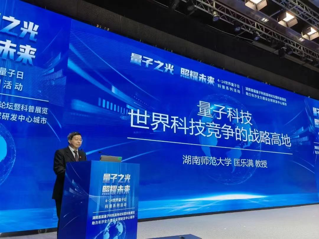 校党委书记、欧洲科学院院士蒋洪新莅临活动现场。他表示,量子科技是各国奋力抢占的科技制高点,更是新质生产力中未来产业发展的新赛道。高校在主动对接国家战略、贯彻湖南省“三高四新”战略、量子科技的研究和助力全球研发中心城市建设方面大有可为。他指出,近年学校发展取得飞速进步,被世界大学学术排名ARWU评为国内发展进步最快大学之一,量子物理就是其中的一个缩影。量子科技研究和物理学科建设取得了丰硕成果。他希望,物理学科要持续推进创新型人才培养、基础教育服务和科研成果转化,更主动融入新长沙和湘江新区建设,为助力湖南“三高四新”美好蓝图建设贡献湖南师大智慧和力量。