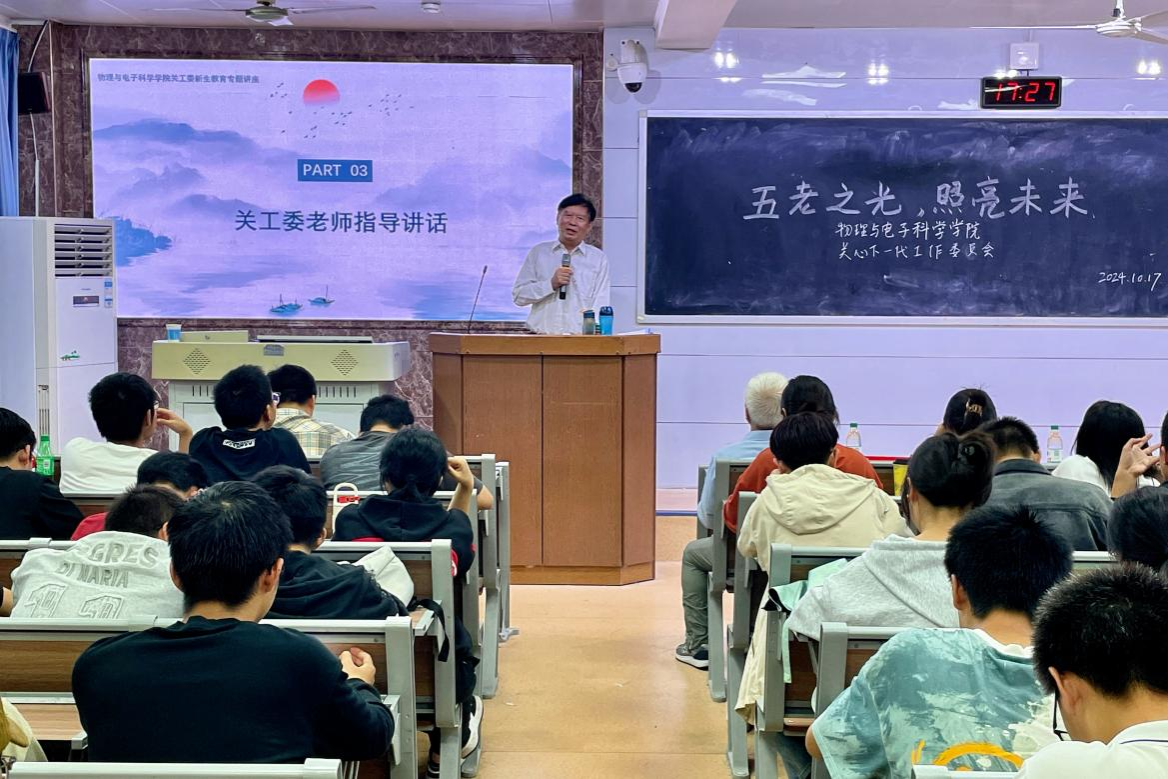(通讯员 黄檬 张婧怡 谭烨茜)10月17日下午,满冠正规平台关工委于格物楼109阶梯教室开展“五老之光,照亮未来”新生教育主题讲座。院关工委唐咸林、海文华、周光辉老师担任主讲人,院党委副书记郭铭伟,学工办全体辅导员出席讲座。