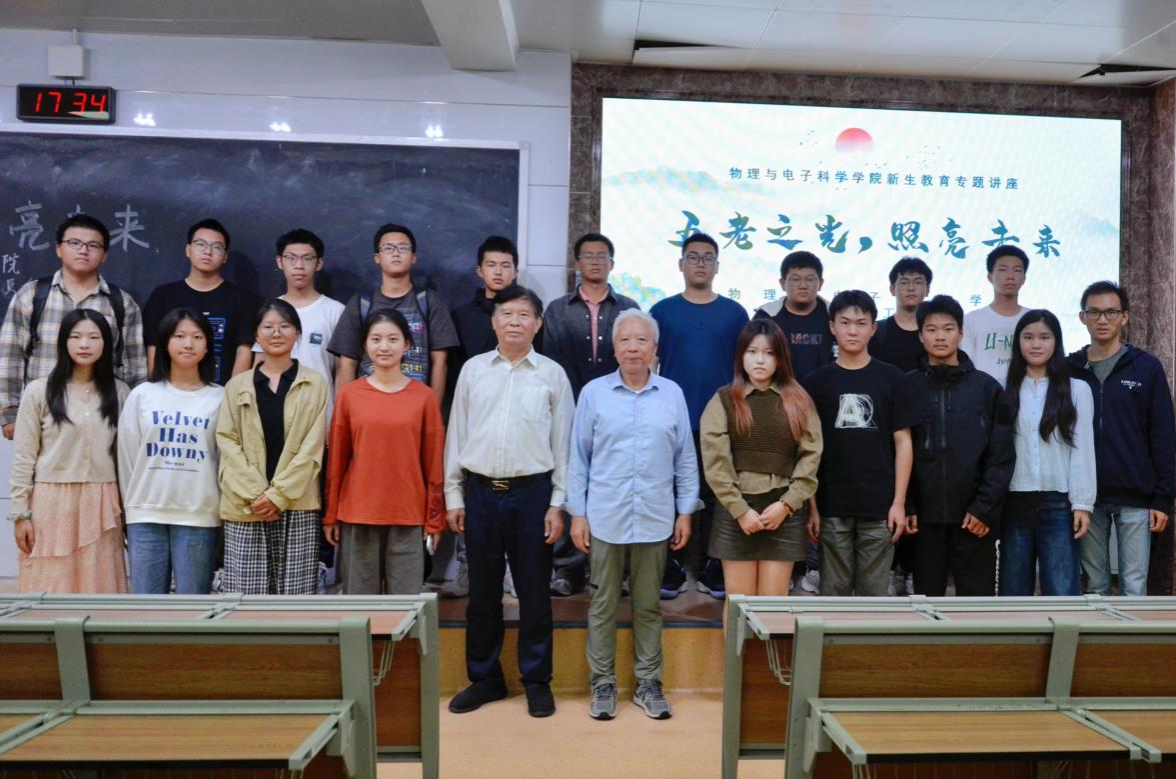 海文华从物理学与各个学科之间的关系出发,指出物理学在各个领域的重要性。他将物理学中的基本科学方法迁移到同学们的学习生活中,鼓励学生追求真理,顺应自然和社会发展的客观规律,使用符合科学原则的途径和手段,实现“德谋并举,学好物理”。同时,他从三个角度教育同学们如何追求真理,希望新生要热爱物理、追求真理,为提高全民科学素质贡献自己的一份力量。