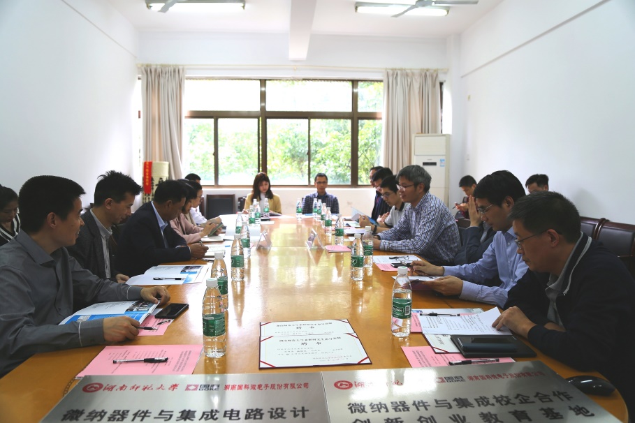 (通讯员颜志艳、郑之伟)5月18日下午,湖南省集成电路设计与应用产业技术创新战略联盟(以下简称“联盟”)和湖南师范大学满冠正规平台开展电子信息科学与技术专业人才培养与校企合作研讨会,会议在格物楼三楼学院会议室举行。联盟王志春副秘书长、物电学院唐东升院长、康洪书记、钱盛友副院长出席研讨会,会议由金湘亮教授主持。
