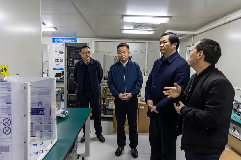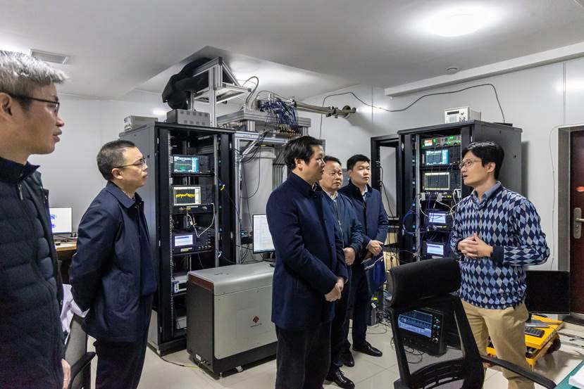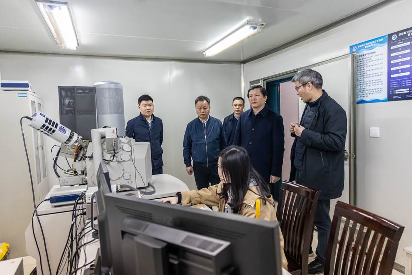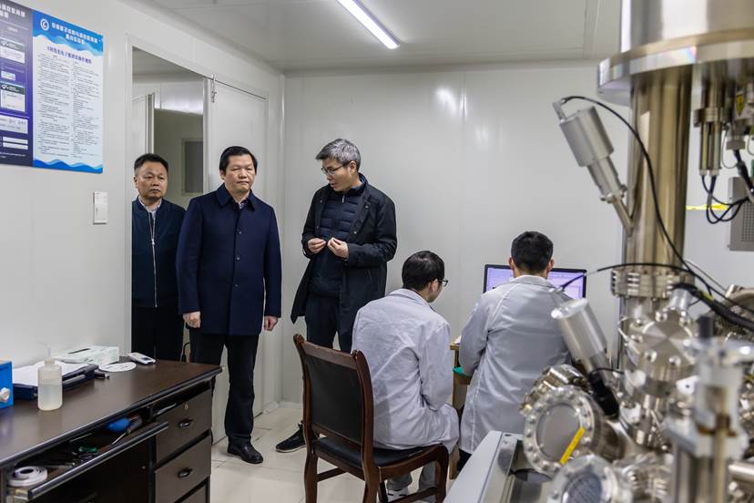曾立新一行参观考察了超导量子实验室、微纳加工与测试实验室、氢能量子催化实验室、多功能成像实验室,并详细询问了实验室研究进展及产生的效益等。曾立新充分肯定和赞扬了实验室取得的成绩,他表示,省科技厅将持续关注实验室的发展,并给予实验室多方面的支持。