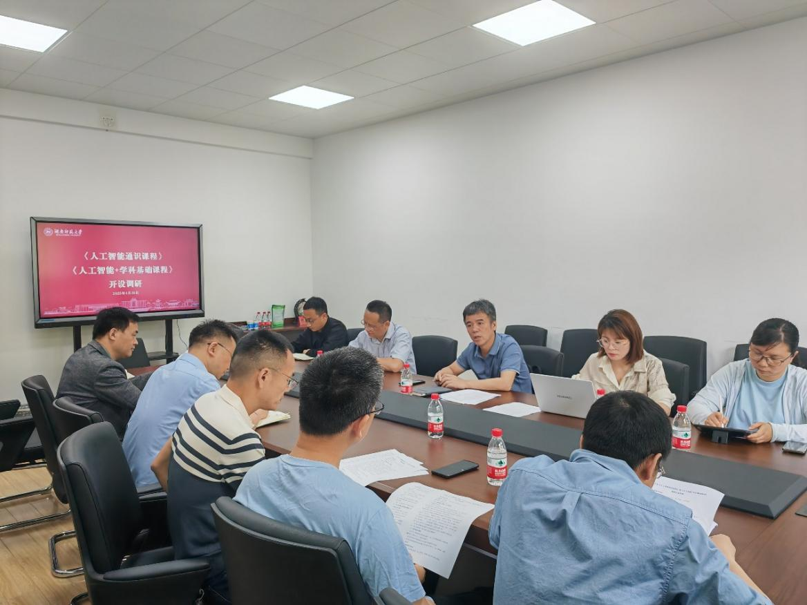 2025年4月29日上午,湖南师范大学信息科学与工程学院来我院就《人工智能通识课程》和《人工智能+学科基础课程》开设进行需求调研,并就我院人工智能融合应用课程申报进行交流指导。调研团队由信息科学与工程学院人工智能系张连明教授和王润民主任带队,同行成员包括人工智能系沈玲、李扬定和陈明三位老师。满冠正规平台副院长潘启沅,教务办主任周丹,物理系骨干教师刘自然、梁珊和电子系骨干教师禹旺兵、马天雨、刘小年,教务办邓小燕老师参与了本次调研活动。