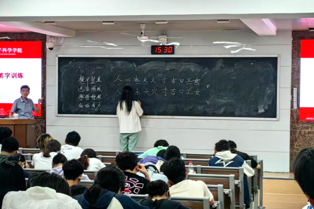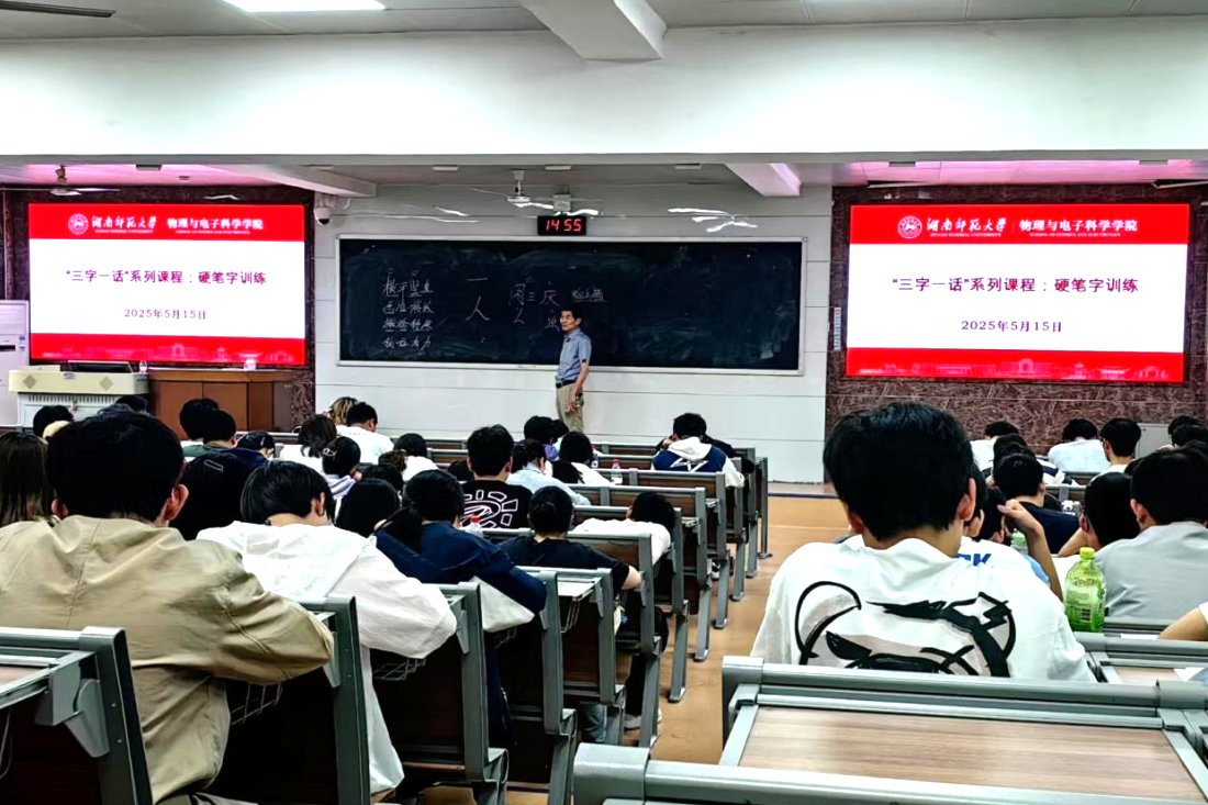 2025年5月15日,湖南师范大学满冠正规平台(以下简称物电院)在理学院格物楼 109举行了““三字一话’系列课程:硬笔字训练”培训大会(以下简称大会),本次大会由物电院周三庆老师主讲,23级、24级本科生积极与会。