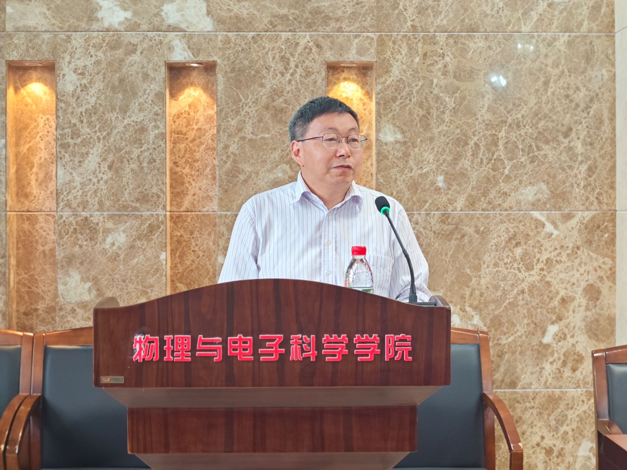 各职能部门领导分别发言,为学科建设提供了具体支持和指导。发展规划与学科建设处处长孙岳兵详细介绍了第六轮学科评估评价指标体系的最新形势和动态,为学科建设指明了努力的方向,他希望学科抓紧最后半年时间努力破解问题短板,为学科迈向更高水平冲刺;教务处处长银海强强调本科生的培养在学科评估中的重要支撑作用,他表示教务处将全力支持物理学学科的建设;财务处处长匡尹俊表示将一如既往做好服务工作,为物理学学科高质量发展添砖加瓦;科技处副处长李云龙鼓励教师多报大项目、大奖励、多做成果转化,祝愿教师取得更多科研成果,助力学科发展;资产与实验室管理处副处长罗万才为学院取得的成绩表示欣喜,作为条件保障部门,资产与实验室管理处将全力做好服务工作;研究生院副院长邹永星承诺将努力做好研究生培养工作,一如既往地支持学院学科发展。