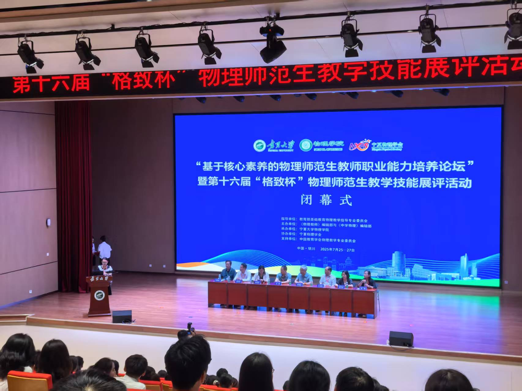 (通讯员 郭桂周)2025年7月25日至27日,基于核心素养的物理师范生教师职业能力培养论坛暨第十六届“格致杯”物理师范生教学技能展评活动在宁夏大学成功举行。本次活动由教育部基础教育物理教学指导专业委员会和中国教育学会物理教学专业指导委员会指导,《物理教师》编辑部、《中学物理》编辑部主办,宁夏大学承办。来自北京师范大学、华东师范大学、华中师范大学等116所高校的1400余名师生参加。论坛和展评活动为参赛师生提供了展示与交流的平台,参赛者通过展示教学技能、自制教具以及交流教学心得,得以全方位提升自身的教育素养。
