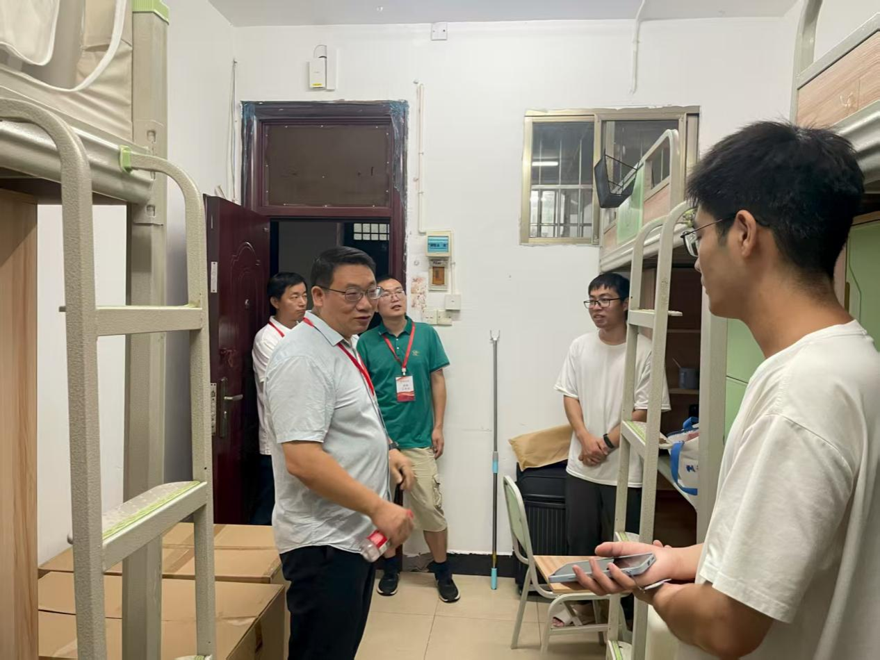 9月14日晚,院党委书记罗嵘、副院长欧阳和副院长廖洁桥带领研究生办老师、研究生兼职辅导员和研究生会干部前往新生宿舍进行夜间走访,了解新生入学适应情况。面对新生提出的各类问题,领导和老师们耐心解答,并重点强调安全教育,要求新生时刻绷紧安全弦,增强防范意识,严格遵守学校安全规定,共同维护寝室安全稳定。