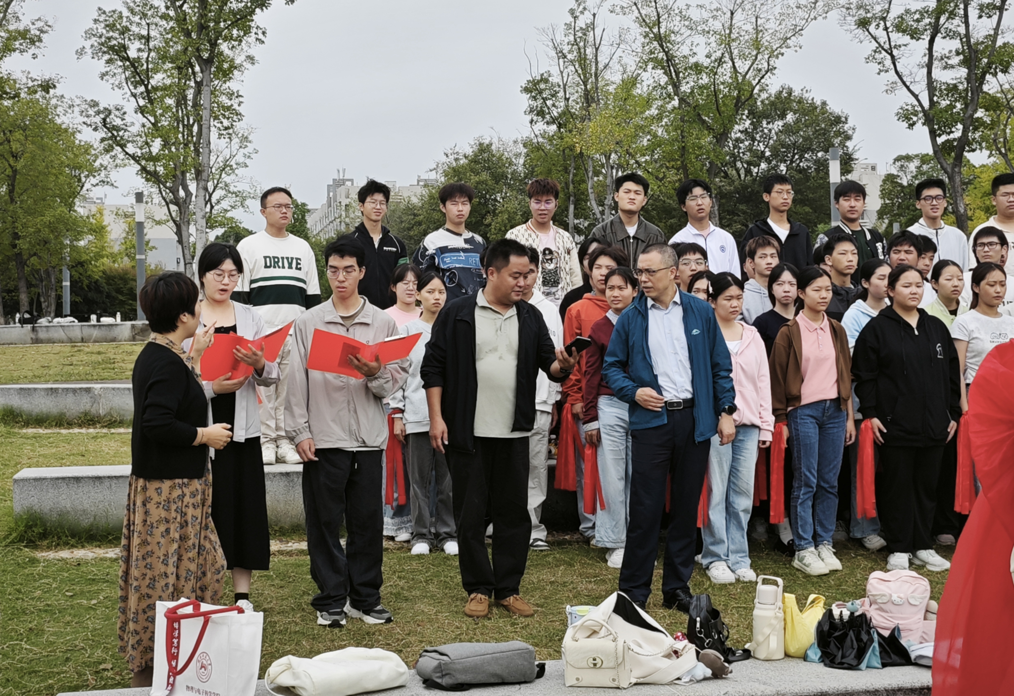 在排练过程中,罗嵘书记、刘红荣院长、郑智副书记全程投入,积极参与。罗嵘书记与同学们一同放声高歌,用激昂的歌声鼓舞士气;刘红荣院长仔细倾听各声部的配合,对同学们的进步给予充分肯定;郑智副书记则与同学们互动,为大家的演唱节奏和气势加油鼓劲。领导们的亲身参与,瞬间点燃了全场的热情,将排练气氛推向高潮。同学们倍受鼓舞,以更加铿锵有力、激情澎湃的歌声回应领导们的关怀,充分展现了物电学院2025级新生团结一心、奋发向上的集体凝聚力。
