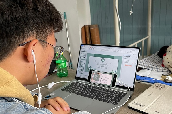 大赛共有四组选手参加,每位负责人通过共享演示文稿展示自己的参赛作品,分别从团队简介,项目介绍,项目背景等方面展开介绍,并从效益性,创新性,可行性等方面介绍他们的设计思路。两位评委老师也针对项目实施过程中可能遇到的问题对参赛者提出了疑问和建议,同时也肯定了他们敢于创新,勇于展示的精神。
