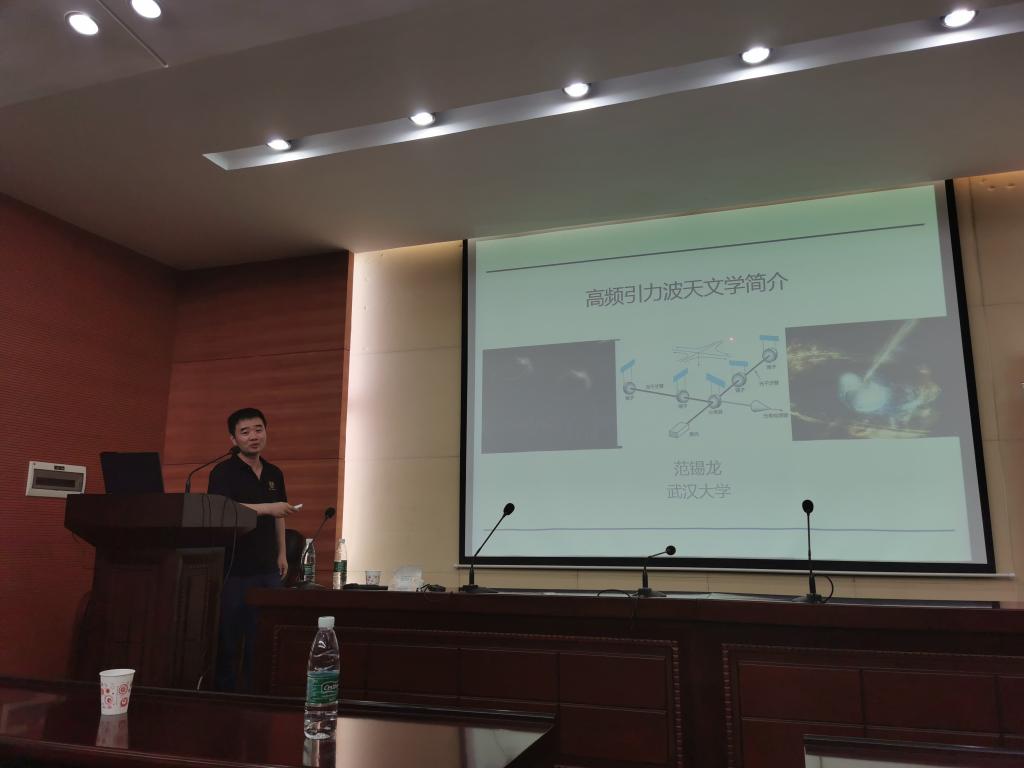 6月9日下午,武汉大学范锡龙教授做客彭桓武科教中心量子论坛,主讲了题为《高频引力波天文学简介》的学术讲座。讲座在量子楼410会议室举行,由物电院王接词教授主持。