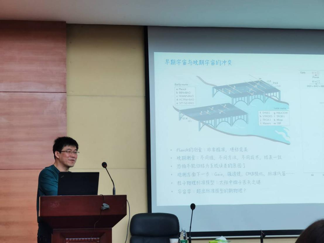 讲座围绕引力波的探测及其它天文观测对宇宙学参数的限制展开。张鑫教授介绍了引力波探测开启了天文学和宇宙学研究的新窗口,比较了不同天文观测对哈勃常数的限制,并对未来更精确的天文观测进行了展望。