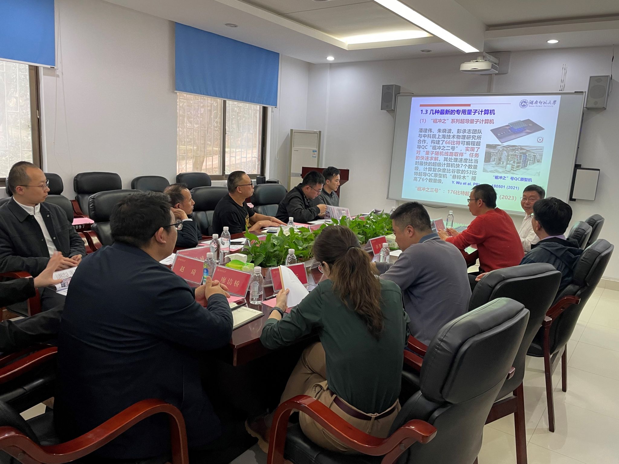 3月22日下午,湖南省科技厅前沿技术处处长王先民一行莅临我院开展量子科技及其产业发展调研。我校副校长潘安练、科技处处长唐东升、副处长邹永星等出席会议,会议由学院副院长廖洁桥主持。