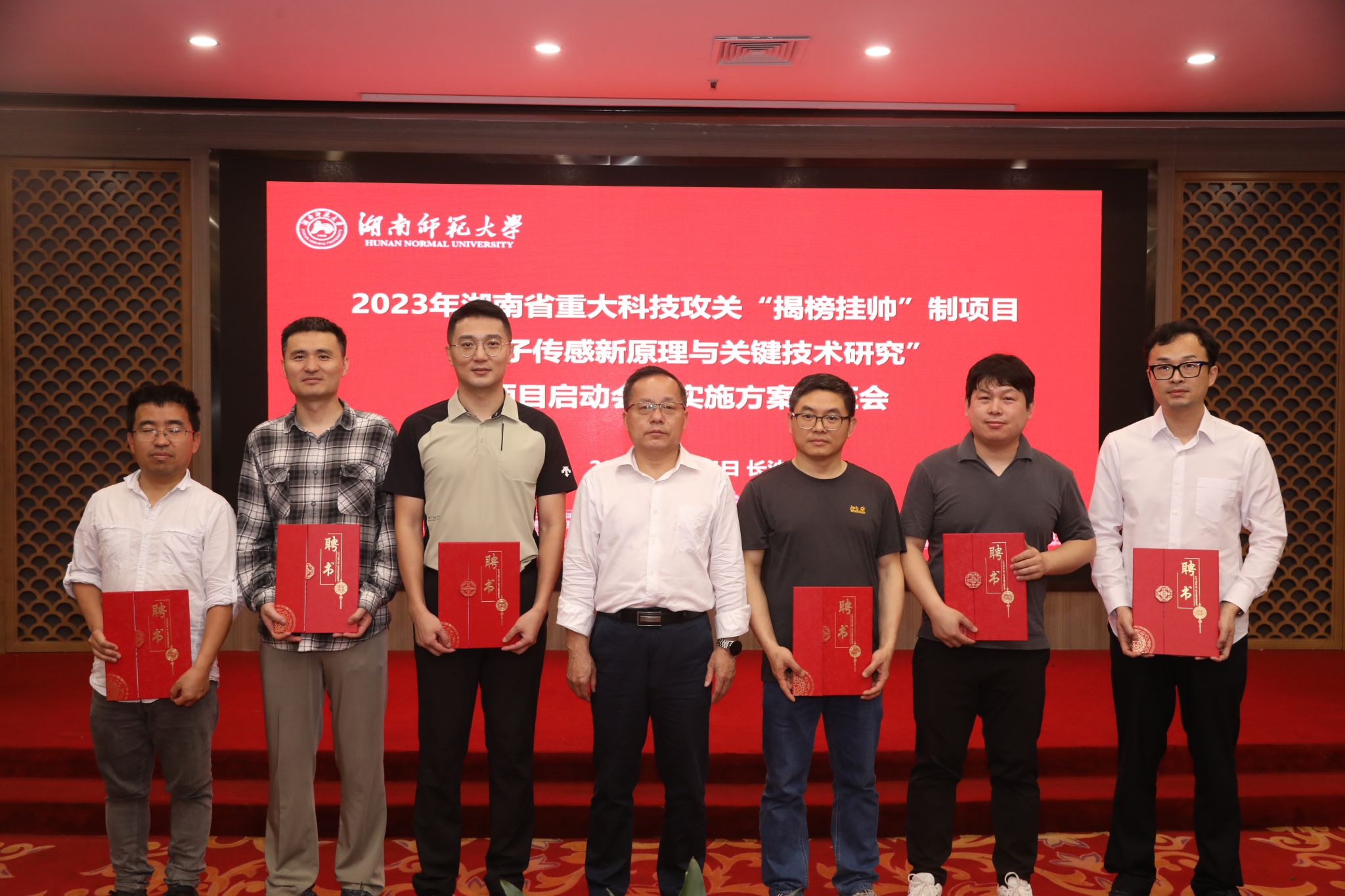 (彭美瑜 供稿)2024年4月16日,由我校景辉教授作为项目负责人,湖南师范大学牵头联合国防科技大学、长沙量子测量产业技术研究院有限公司共同承担的2023年湖南省重大科技攻关“揭榜挂帅”制项目“量子传感新原理与关键技术研究”项目启动会暨实施方案论证会在长沙召开。