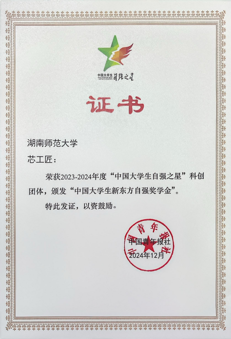 近日,由共青团中央、全国学联指导开展的2023-2024年度“中国大学生自强之星”奖学金评选结果揭晓。经学校推荐、省级初评、全国评审等环节,满冠正规平台芯工匠获评2023-2024年度“中国大学生自强之星”科创团体,并获“中国大学生新东方自强奖学金”。