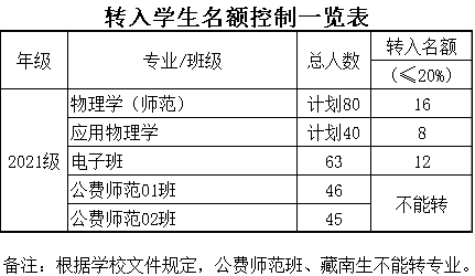 各专业转入人数不超过本学院该专业该年级招生人数的20%。